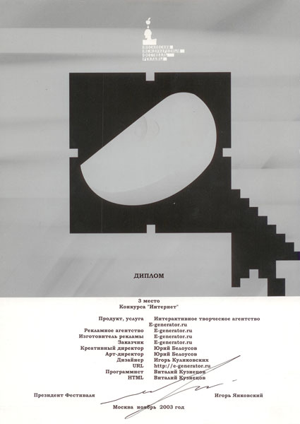 Кто мы?Креативно-коммуникационное агентство «Е-генератор» — компания, специализирующаяся на генерации креативных рекламных и маркетинговых идей продвижения товаров и услуг, их визуализации и реализации, как в интернете, так и в офлайне. Основным нашим отличием от классических рекламных и маркетинговых агентств является принципиально новая модель организации бизнеса, связанная с современным состоянием развития информационных технологий. Суть этой модели — привлечение посредством интернет-коммуникаций авторов: как профессионалов из области рекламы и маркетинга, так и наиболее творческих и активных пользователей интернета и потенциальных потребителей товаров и услуг. Это позволяет получить максимально быстрый, широкий и творческий взгляд на любую задачу, сформулированную заказчиками. Кто наши клиенты?С нами как на постоянной, так и на проектной основе работают многие коммерческие, государственные и общественные организации — от регионального до федерального уровня. В числе наших наиболее известных клиентов: